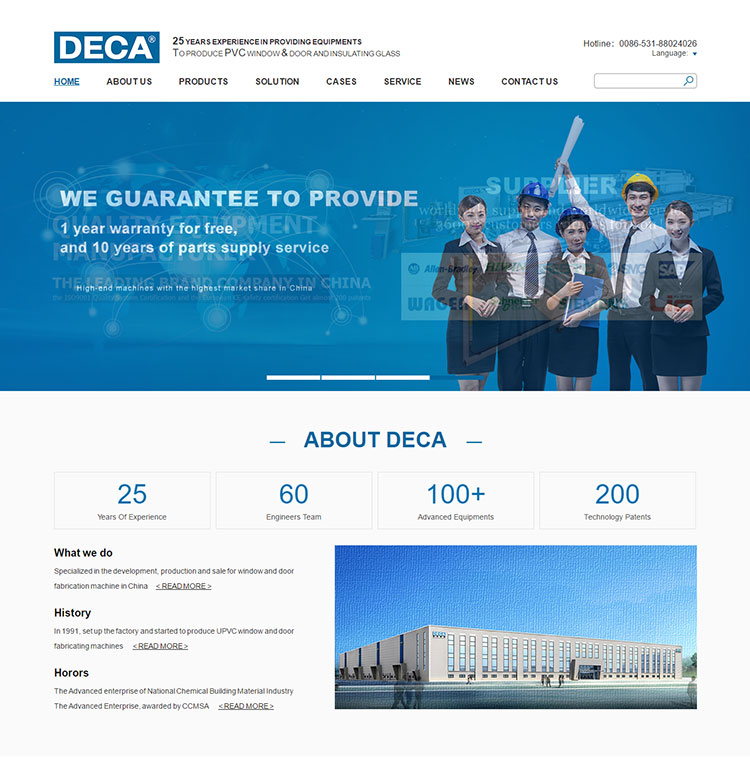 dhering to the consistent concept of " DECA machine, expert quality", JINAN DECA TECHNOLOGY CO., LTD. is committed to developing higher use value for users, providing better use experience of the high-quality door and window fabriation equipment.
